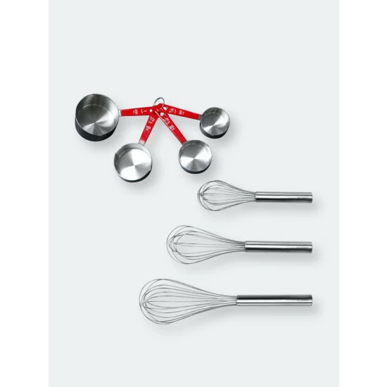The tool set hardware is constructed from 7 wire stainless steel so, whisk your eggs, whip cream, pancake batter and more. The complete baking tools you’ll need.