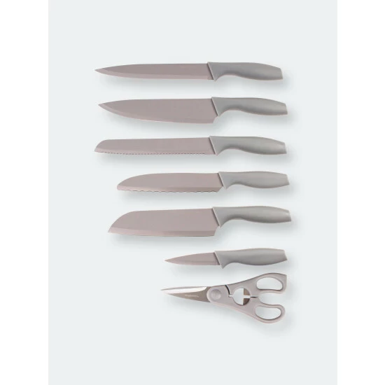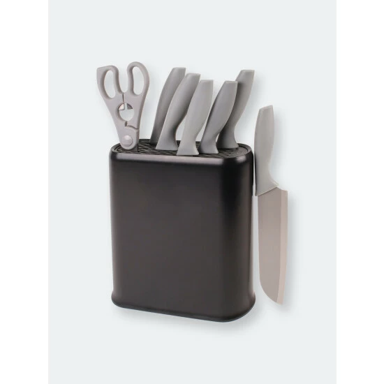 With a perfect combo of modern design and practical features, this 8-piece grey knives and black pp block with two-tone knife insert set is an asset in any kitchen. The award-winning knife block is equipped with a non-skid base for a secure placement and comes with a two-tone knife insert. This knife set has non-stick coating blade and soft-grip handle so you’ll be cutting, slicing and dicing your way around the kitchen in no time! The removable insert is easy to clean and provides storage space for up to 8 knives while the block’s non-skid base ensures a good grip on the countertop. Spend no time on clean-up with the removable knife block. Dishwasher safe, hand-wash recommended for long lasting use. With this essentials steak knife set, treat yourself and your guests to the ease of cutting through steak like butter.