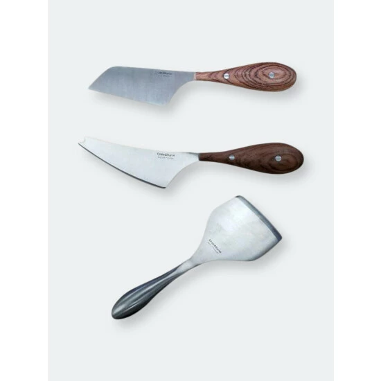 Enjoy the beautiful design of this cheese tool set, designed by Aaron Probyn. The stainless steel is durable and sure to last! The handles have a classic look to match any décor and are designed for a strong and secure grip.