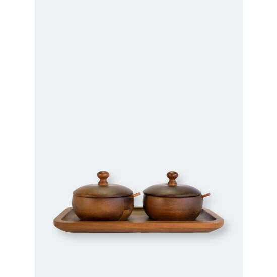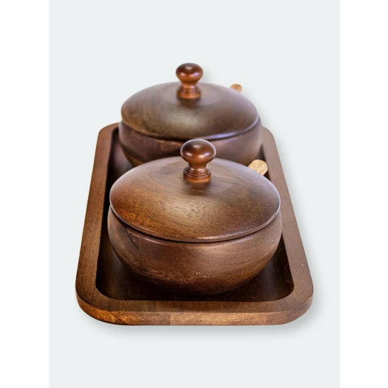 Let your seasonings be an on elegant display, filling your home with a fresh herb smell that will make you (and your guests) feel right at home. This Spice Jar Set is made of acacia wood, with a beautiful deep wood grain that is designed for durability. Fill each jar with your favorite seasonings – such as salt, pepper, cumin, herbs, or even sugar – and serve it on our high quality tray to complete the look.