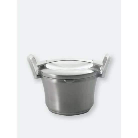 The 3.1qt patented 6-layer base covered casserole pot transfers heat quickly and spreads evenly throughout the complete surface of the base. 18/10 stainless steel body with white stay cool handles. Practical scaling inside. Convenient pouring rim and the design of the handles on body and lid offer hassle-free pouring of liquids. Suitable for all heat sources, induction included.