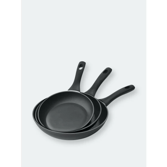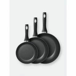 Including a 8 inch, a 10 inch and a 11 inch frying pans, this set provides you with the right fit to cook any kind of food. Meat, fish and veggies will be baked to perfection when you get out these aluminum frying pans that are suitable for all stovetops, including induction. Not only do they feature a high-quality non-stick coating that guarantees an easy food release and a simple clean-up, they also have a convenient stay-cool handle that ensures a comfortable and heat-safe grip. Thats what we call a real must-have in the kitchen!