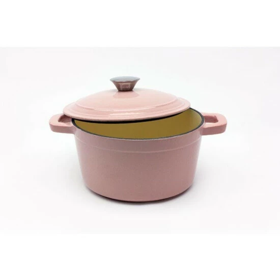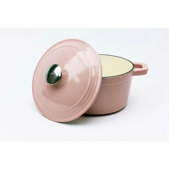 The 3qt Cast Iron pink stockpot dish is a modern collection that marries function, design and innovative use of materials to create an outstanding line of cast iron cookware. The cast iron is marked by pure lines giving each product its own identity and functionality. The covered dishes are ideal for slow cooking stews, braising, baking and so much more. It is enameled inside and out and suitable for all heat sources including, gas, electric, induction and ceramic.