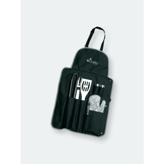 Cubo’s 9 Pieces BBQ set is stylish and effective with hollow utensil handles that are made of stainless steel. The Right-handed oven mitt and apron are made with 100% cotton.