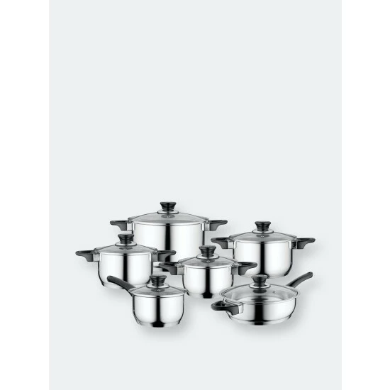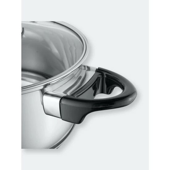 With their high quality stainless steel bodies, the three layer base ensures even heat transfer throughout the entire surface for energy efficient cooking. The pots and pans in this cookware set are a perfect fit for any kind of stove top, including induction. Stay cool handles provide a safe and comfortable grip for easy lifting. The mirror finish gives this cookware a stylish look. The pots all come with a clear glass lid which allows you to monitor the contents without having to lift the cover and waste valuable energy. Once you’ve served a delicious meal, you can pop all the items into the dishwasher for an easy clean up.