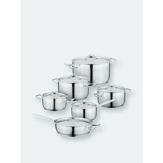 BergHOFF’s name is synonymous with quality and class- this cookware set is no exception. Made of durable 18/10 stainless steel with a satin finish, this set is great for all kitchen decor. The 3-layer bottom promotes energy efficiency as it is designed to heat evenly with minimal effort. Works for all cooktops- including induction! Set includes 1.7qt covered saucepan, 1.7qt covered casserole, 2.6qt covered casserole, 3.9qt covered casserole, 6.4qt covered stockpot, and 3qt covered deep skillet. Made with stainless steel and dishwasher safe!