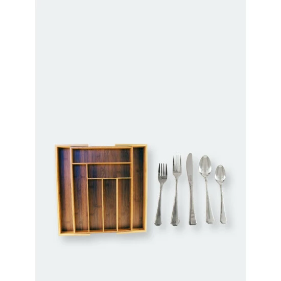 – 5 piece place setting set for 8 guests, with convenient bamboo flatware organizer.