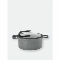 If you’re a fan of homemade stews, soups and stocks, this 28 cm aluminum stockpot is the perfect match for you. It’s suitable for any kind of stovetop, including induction, and features comfortable stay-cool handles for a safe grip, a multilayered non-stick coating for low-fat cooking as well as convenient pouring rims for dripless pouring. Add to this the clear glass lid that can be positioned vertically on the body and comes with two different sized pouring areas that allow for precise straining of various ingredients without having to lift the lid and you’ve got yourself a stockpot you’ll be reaching for time and again. Suitable for all cooktops including induction. Inside dimensions: 11x11x5 / Outside dimensions: 16.25×11.5×7.25