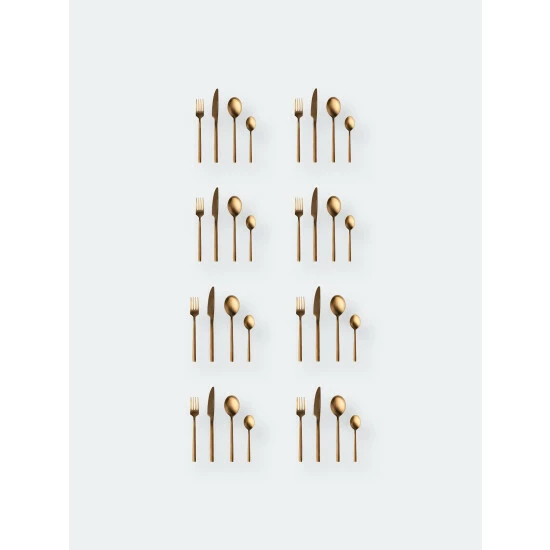 Whether you want to give your everyday dinner a glamorous touch or create a stylish table setting for your next dinner party, with this gold-plated flatware set you’ll instantly glam up your dining table. The knife, fork, spoon and dessert spoon are each made of high-quality stainless steel and feel comfortable in your hands and your mouth. Once you’ve finished your meal, no need to worry about the clean-up, just pop the cutlery in the dishwasher and let the machine work its magic! Service for 8.