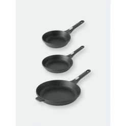 Highly functional with an innovative design, these frying pans are keepers. The variety of sizes allow you to make omelettes or pancakes, pan-fry fish or sear meat before using it in a stew or casserole. The aluminium body ensures a fast and even heat distribution to avoid burned edges while the multi-layered non-stick coating makes no or low fat frying possible for health-conscious cooking. With a simple twist you can detach the handle to use these pans in the oven as well.
