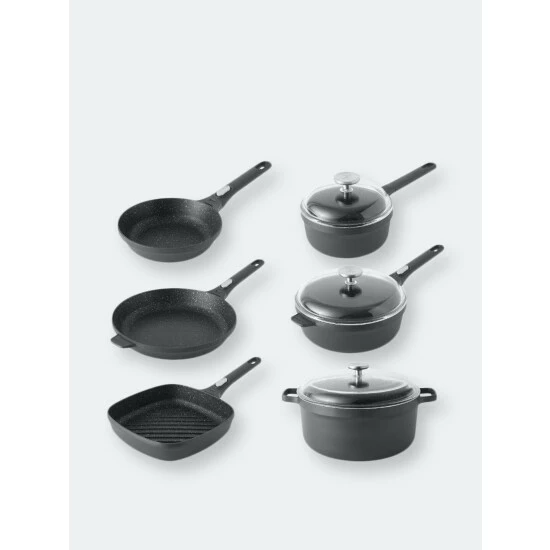 This Gem 10 Piece Non-Stick Cookware Set is designed to be the perfect fit for any kitchen. This set has removable handles for use in the oven and others have glass lids that allow you to monitor cooking progress without losing valuable moisture. The Fernogreen non-stick coating makes your cooking and cleanup easier and faster.