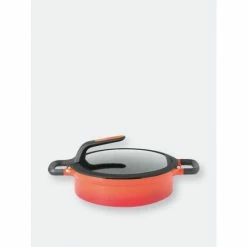 Highly efficient and comfortable to work with, this 2-handle aluminum sauté pan is a must-have in any kitchen. It’s suitable for any stovetop, including induction, and features a high-quality non-stick coating that allows you to cook with little to no oil. Thanks to the stay-cool handles you can easily lift the pan, for example when you’re straining your ingredients with the help of the pouring areas integrated in the lid and the pot’s practical pouring rims.