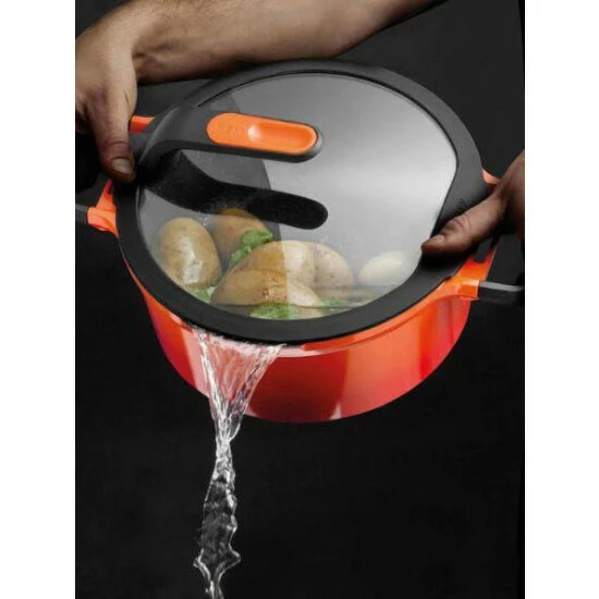 Preparing a meal for one or making a small side dish? Get out this brightly-colored casserole, put it on any kind of stovetop, including induction, and get cooking! The stay-cool handles provide extra comfort and safety, especially when you want to use the pouring lips for dripless pouring and the lid’s integrated pouring areas to strain your ingredients without even lifting the lid. Once you’re done, the multilayered non-stick coating ensures an easy food release and effortless cleaning.