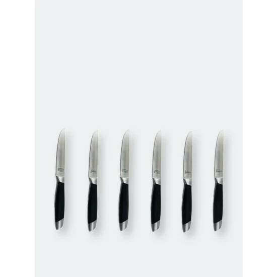This Geminis 6 Pieces steak knife set is a must-have for mealtime. Durable stainless steel blades ensure precision and accuracy. Triple-riveted handles provide a secure, comfortable grip. Six 5-in. steak knives, stainless steel, hand wash only.