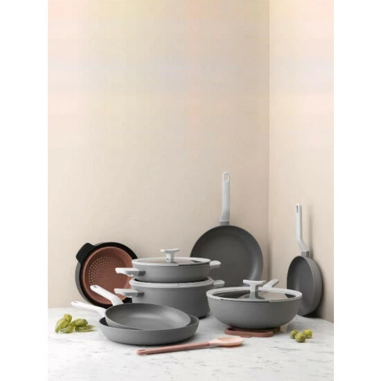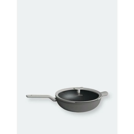 If you’re in love with the smell of a good stir-fry, then you’ll fall for this user-friendly stir fry pan in no time! The pan’s aluminum body ensures a fast and even heat distribution for a perfect fry on any kind of stovetop and is covered with a high-quality non-stick coating that allows you to cook with little to no fat. Tossing the ingredients in the pan is a piece of cake thanks to the soft-touch stay-cool handle, just like keeping the food warm and even straining it by means of the clear glass lid with integrated straining function.