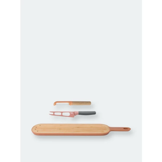 Your essential prepping tools right at your hands – the Leo 3pc Cutlery & Peeler Set is a great asset to any kitchen. The knife and peeler are designed with soft, comfortable-grip handles with quality stainless steel blades sure to last. The cutting board makes a great baguette or bread loaf board, with slots in it to prevent crumbs from going everywhere.