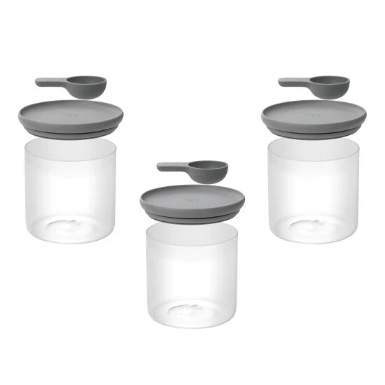 Ground coffee, vanilla sugar, fresh herbs. keep it all fresh and tasty with a little help from these stackable glass food containers. Thanks to their large opening you can easily fill the canisters and take out just the right amount with the help of the matching measuring spoon. These airtight containers are stackable for easy storage, scratch resistant, and dishwasher safe.