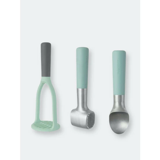This Leo tool set is the go-to for every kitchen! The classic design paired with the bright colors are sure to compliment any décor. This set will include the mint colored ice cream scoop, potato masher and meat hammer.