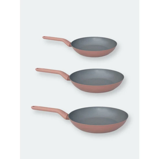 Whether you want to make breakfast for the entire family, brown a piece of meat or make a frittata, this 3 piece frying pan set is up for the job. With their aluminum body that guarantees a fast and even heat distribution and high-quality non-stick coating which allows you to cook with little to no oil, these pans ensure an efficient performance on any kind of stove, induction included. On top of that, the sturdy stay-cool handle that’s soft to the touch provides a good grip so you can safely take the pan from the stove to the table for serving where the non-stick coating guarantees an easy food release.