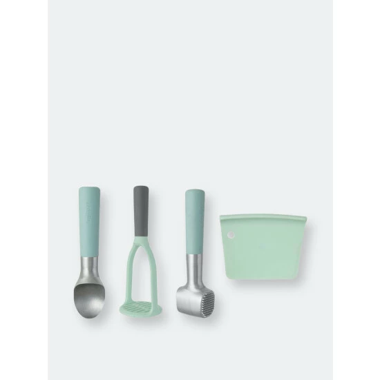 The Leo line from BergHOFF brings playful colors, pure shapes and soft textures to the kitchen. This set is every kitchen’s must-have. Comes complete with 7.25″ ice cream scoop, 9.25″ potato masher, 6.75″ meat hammer, and 5.75″ slicer. Makes for a great gift to that new homeowner!