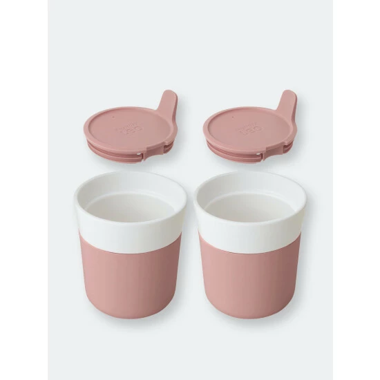 You’re craving a cup of coffee but don’t have the time to stop and take a break? Enjoy your favorite hot beverage on the go in a Leo porcelain travel mug that fits perfectly under your coffee machine and in your car’s cup holder. The high quality porcelain mug holds the heat of your drink while the heat resistant silicone body allows a comfortable grip. Set comes with 2x travel mugs