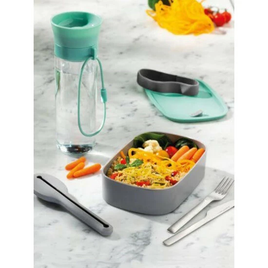 Whether you’re at school, at the office or enjoying a cozy picnic, with this complete lunch set you can easily take a healthy meal with you on your daily adventures. The practical bento box is the perfect fit for a homemade lunch or snack which you can eat whenever and wherever you want with the 3-piece stainless steel flatware set that comes in a convenient silicone sleeve for easy storage and transportation. When you feel like having a drink, just get out your water bottle that features a practical push-to-drink system for a 360° drinking experience and don’t forget to refill the bottle to keep yourself hydrated all day long.