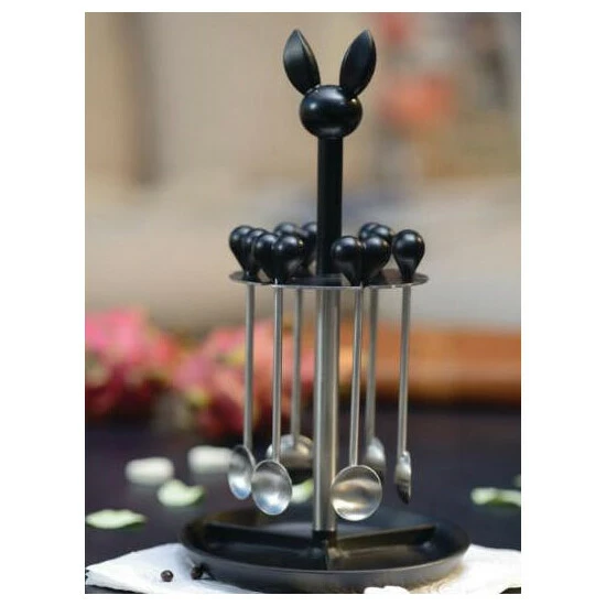 - Materials: – Satin-finished stainless steel tools and black polypropylene head.- Rack with stainless steel center pole and black PP handle.
