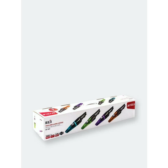 Arnica Merlin ALL-IN-ONE Vacuum Cleaner- Lightweight β under 5 LBs β makes vacuuming much easier- 500 Watts of Power enough to get down to the bottom of the pile- A removable, long stainless-steel handle with black trim- A state of the art βHEPAβ filter removes the finest dust particles- Main vacuum brush for day to day easy vacuum cleaning- A crevice nozzle for those hard corners and tight spaces- A smaller compact brush for cleaning upholstery, cushions and curtains- An additional and washable textile filter- Transparent βcoloredβ dust container with no messy bag or ongoing cost- A 18-foot electric cord holder provides easy coverage across all rooms- Great for carpets, rugs, tiled floors, wooden floors, furniture, cushions and curtains