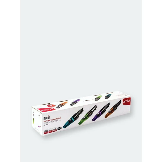 Arnica Merlin ALL-IN-ONE Vacuum Cleaner- Lightweight – under 5 LBs – makes vacuuming much easier- 500 Watts of Power enough to get down to the bottom of the pile- A removable, long stainless-steel handle with black trim- A state of the art ‘HEPA’ filter removes the finest dust particles- Main vacuum brush for day to day easy vacuum cleaning- A crevice nozzle for those hard corners and tight spaces- A smaller compact brush for cleaning upholstery, cushions and curtains- An additional and washable textile filter- Transparent ‘colored’ dust container with no messy bag or ongoing cost- A 18-foot electric cord holder provides easy coverage across all rooms- Great for carpets, rugs, tiled floors, wooden floors, furniture, cushions and curtains