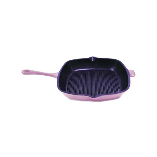 The 11″ Pink square grill pans body is made of enameled cast iron which will provide a steady and even heat distribution, the enameled coating allows for being stain resistant, dull resistant and will stand up to long lasting use. The cast iron construction provides strong heat retention and no additional seasoning required. Ideal for use on any cooktop, including induction, for the best results use a low to medium heat. The square grill pan is an excellent choice for grilling meats, seafood or vegetables and requires little oil and no seasoning.