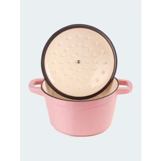 – Made of durable cast iron with matt enamel finish, secure grip handle, matching lid.