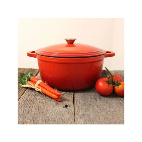Set includes: 3qt covered stockpot, 5qt covered stockpot, 10″ fry pan. The cast iron has great heat retaining abilities and can be used on any heat source. Classic in a modern design, solid material for all your cooking needs.