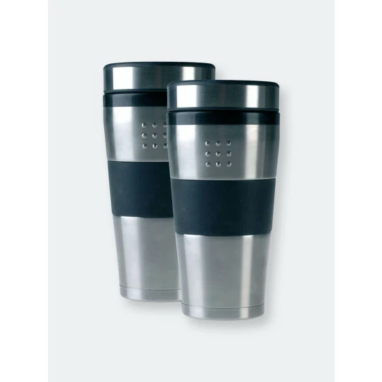 – 2 16oz, 7″ Stainless steel w/ black accent travel mug