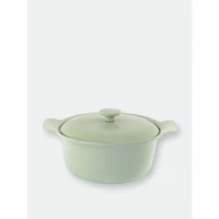 10″/4.4qt Green Covered Stockpot is made of Cast iron which has great heat retaining abilities: it’s the perfect choice for slow cooking and for hearty stews prepared in the oven or on the stovetop. The cover locks in the moisture and small bumps on the interior make sure the evaporated juices are directed on to the food for extra tasty results. Only little oil is needed with this pan: the perfect option for low-fat frying. Wide handles for a safe grip, even when wearing oven mitts or using potholders.
