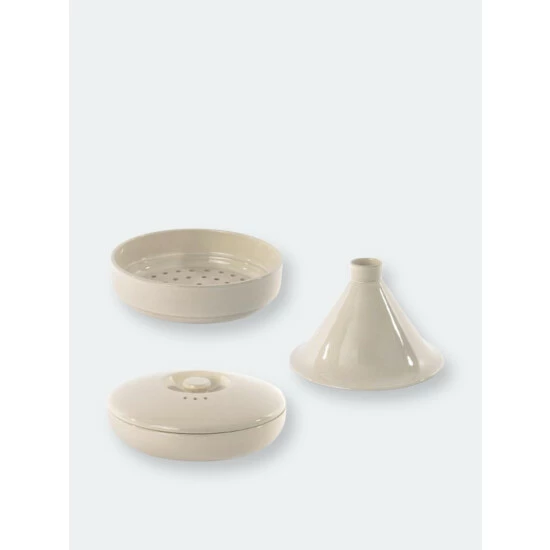 The 9.75″ Ceramic Covered Stockpot offers varieties of cooking many different dishes. The 9.75″ Steamer insert acts as a steamer to enjoy all the benefits of steamed fish, vegetables or poultry inside the stockpot. The 11.5 Tajine’s conical shape makes a uniquely moist, hot cooking environment for the dish being cooked. The base is wide and shallow, and the tall lid fits snugly inside. As the food cooks, steam rises into the cone, condenses, and then trickles down the sides back into the dish.