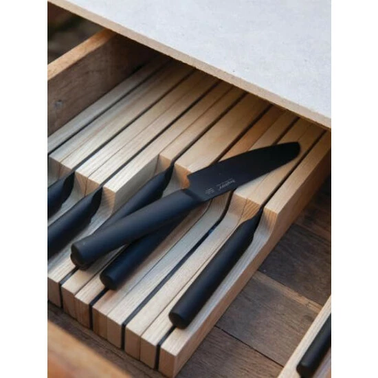 5″ Black Chef’s Knife offers a range of versatility for the most common cutting jobs in the kitchen. Choose from black steel knives featuring a titanium and non-stick coating with either contrasting ashwood handles or matching black handles. Or simply don’t choose and mix the two styles. Well balanced with a heavy bolster providing perfect balance for increased control. Handle: 18/10 Stainless Steel Hollow Handle, Blade: Chrome-molybdenum-Vanadium steel with a black layer coating (titanium + non-stick coating).