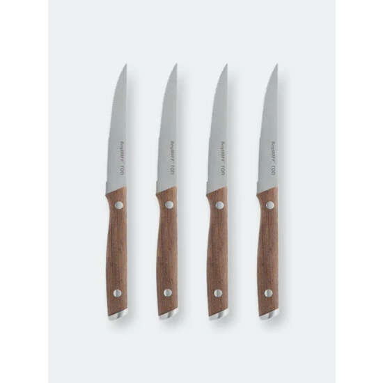 Whether you’re planning a steak with pepper sauce, a baked chicken or juicy piece of steak, you’ll cut it in the flick of a wrist with this 4-piece steak knife set! As soon as you pick up one of these knives, you’ll love the warm feel of the crack-resistant wooden handle and the way the serrated blade slices right through the meat. Includes 4 steak knives.