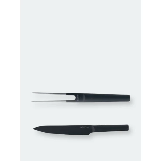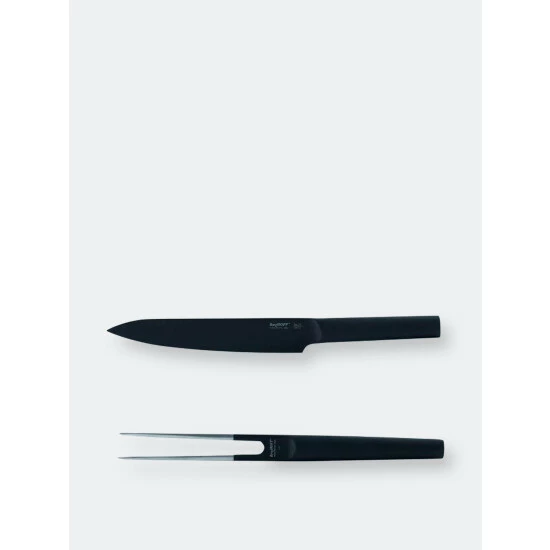 The Ron line offers a range of versatile knives for the most common cutting jobs in the kitchen. The Ron Carving knife is a must have in the kitchen for roasts, hams etc. Black steel knives featuring a titanium and non-stick coating with either contrasting ash-wood handles or matching black handles.