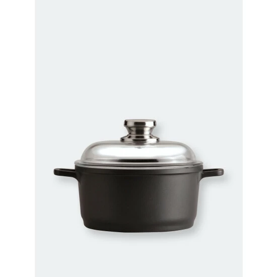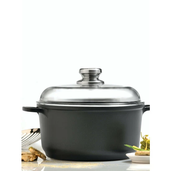 Sturdy feel but easy to handle cookware in aluminum with fast and even heat distribution. Multi-layered and reinforced PFOA-free non-stick coating for easy food release and effortless cleaning. Contains no lead and no cadmium. Monitor the contents inside thanks to the glass cover. No need to lift the cover and waste valuable energy and loss of flavour
