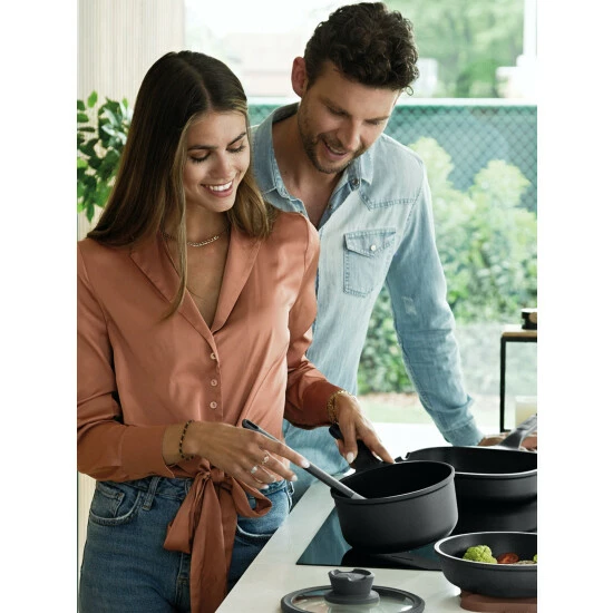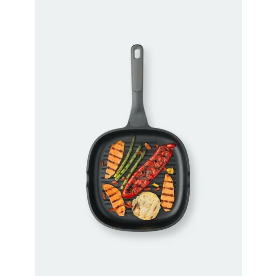 A couple of perfectly seared steaks, fish filets or a variety of vegetables, it’s a piece of cake with this 10″ grill pan! It’s made from high-quality cast aluminum and can be used on any kind of cooktop, including induction. The grill pan’s soft-touch handle ensures a comfortable and safe grip while the raised grill lines leave those typical grill marks and allow any fat and moisture to escape easily so you get that extra crispy result. The two indentations on the side of the pan make it easy to pour liquids away. An added bonus is the high-quality non-stick coating that ensures an easy food release and makes the clean-up a breeze.