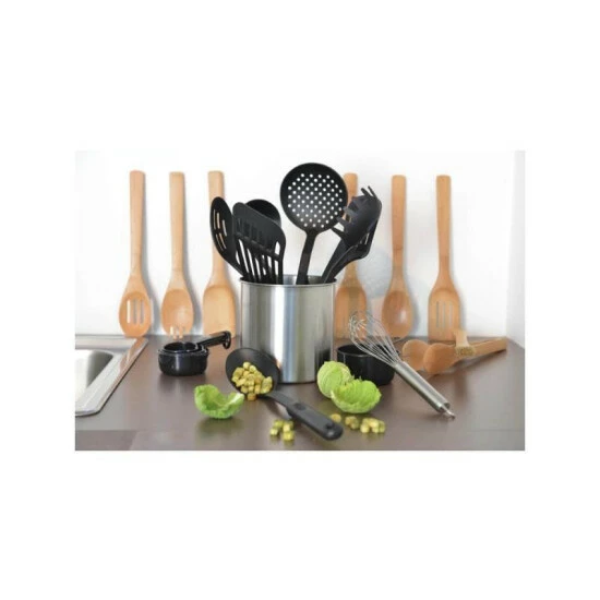Perfect for master chefs–and those still trying to figure out the cooking thing–this 23-piece BergHOFF kitchen tool set prepares you for any meal venture. These kitchen necessities are made from bamboo, nylon, or stainless steel, and vary from slotted spoons to cake servers and tongs to measuring cups. Plus, for easy storage and a tidy kitchen, all the pieces fit nicely in the provided tub. From BergHOFF.