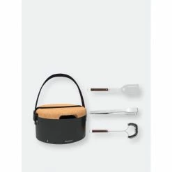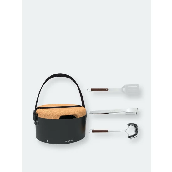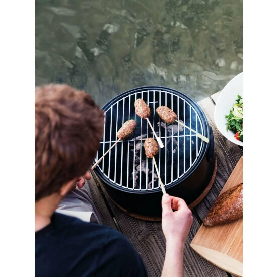 Thanks to the social grill, guests gather at the table to participate in a real social happening with the stylish grill as a centerpiece. Each guests is able to grill their own food exactly how they like it – and all while chatting away around the Social Grill! To make it even more versatile, this grill is the absolute outdoor companion: take it to the beach, to a picnic spot, enjoy it on a boat. The convenient carrying strap holds all the elements in place allowing the grill to be taken to any outdoor location. Set up in no time and ready for grilling in an instant thanks to the adjustable airflow. 3-piece barbecue set you’ve got 3 essential grill instruments within reach. Each tool is made of high-quality stainless steel and has a long handle for extra safety which is covered in crack-resistant wood that gives the tools an authentic character and provides you with a steady grip. Set includes: Tabletop BBQ Grill x1, Tongs x1, Spatula x1, Wire Brush x1.