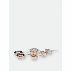 This beautiful polished copper cookware set is sure to be the focal point of your kitchen. With its stunning hammered design you will be glad to show this set off to all your friends and family. Set includes: 1 Qt sauce pan with lid, 2 Qt sauce pan with lid, 3 Qt sauce pan with lid, 5.75 Qt Dutch oven with lid, 8″ deep skillet/fry pan and 9.5″ deep skillet/ fry pan.