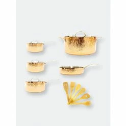 This beautiful hammered copper cookware set is sure to be the focal point of your kitchen. With its stunning hammered design you will be glad to show this set off to all your friends and family.