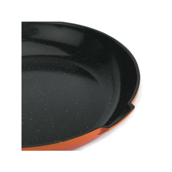 Virgo’s 8″ fry pan has a clear yet subtle expression, the Virgo line is an eye-catcher for any kitchen. Cast aluminum body ensures even and steady heat distribution. Those big, ergonomic handles stay cool during cooking. Their unique shape and perforated rim of the cover allows you to pour out liquids while still in the pan.